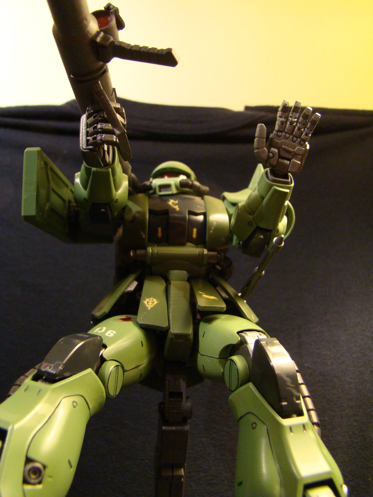 Well as I work on a The O a friend is leaving the island and has been following my builds closely. I thought his son might enjoy one of my Gundam for himself so I gifted one to him. My Zaku Minelayer. As such I thought it fitting to take some more photos as I only had 3 and post about this guy since I had not done so. I built this Gunpla well before I was a blogger and so there are no WIP photos or anything of the sort, but I felt this guy as one of my personal favorites, and as one of the VERY few that I have followed intended color schemes on it was deserving of a posting. With out further delay I give you Zaku Minelayer Ver. Tember.